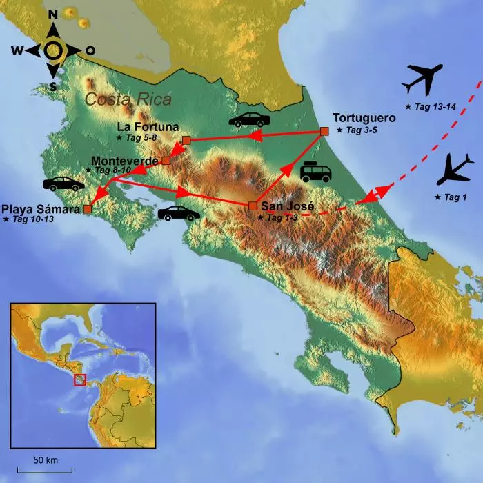 Heute ist es an der Zeit, sich von der herrlichen Playa Sámara und Costa Rica zu verabschieden. Sie fahren zurück nach San José und geben Ihr Auto in der Nähe des Flughafens zurück. Ein Shuttlebus bringt Sie von der Mietwagenfirma zum Flughafen, von wo aus die Heimreise beginnt.