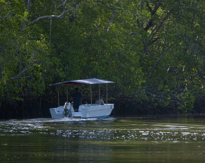 Gleiten Sie sanft auf einem überdachten Boot durch die schmalen Kanäle der Tamarindo-Mündung, während sich die Natur um Sie herum entfaltet. Halten Sie Ausschau nach Affen in den Baumwipfeln, Leguanen auf den Ästen und Krokodilen an den Ufern. Der Mangrovenwald ist zudem Heimat zahlreicher Vogelarten – mit etwas Glück entdecken Sie bunte Vögel oder Fische, die aus dem Wasser springen.