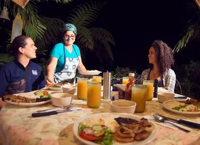 Nach dieser kleinen „Abendsafari“ endet der Ausflug mit einem traditionell costa-ricanischen Abendessen unter freiem Himmel. Sie können das Essen bei einer herrlichen Aussicht auf die Lichter der Städte rund um San Carlos genießen.