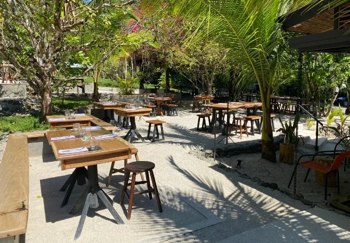 In der malerischen strohbedeckten Restaurant-Bar werden ein tropisches Frühstück, erfrischende Getränke und Gerichte aus der argentinischen Küche kombiniert mit costa-ricanischen Zutaten und Gourmeterlebnissen serviert.
