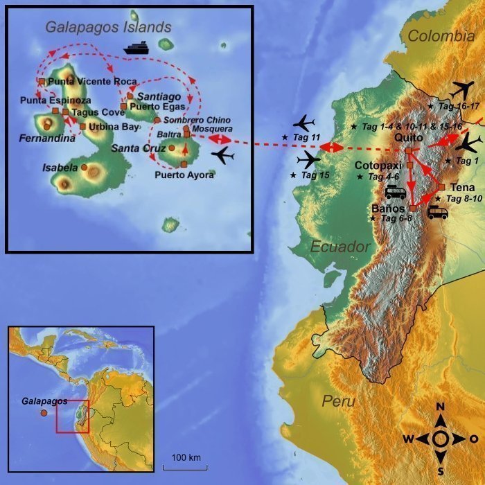 Freuen Sie sich auf ultimative Natur- und Tiererlebnisse bei dieser Reise nach Ecuador. In diesem kleinen Land findet man hohe Berge, aktive Vulkane, rauschende Wasserfälle, grünen Regenwald und natürlich die zauberhaften Galapagosinseln.