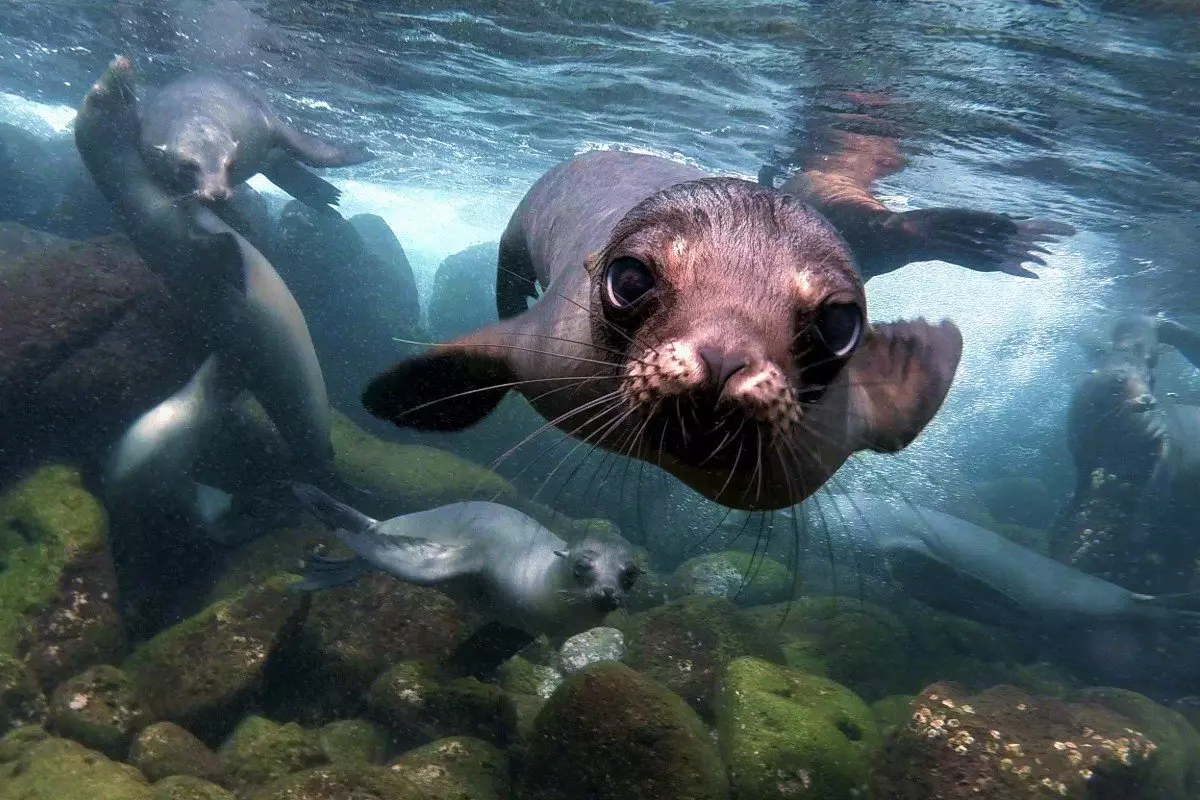 Auf der Insel findet man außerdem unzählige Meerechsen und Seelöwen. Hier ist einer der wenigen Orte, wo man den Galápagos-Seebären beobachten kann.
