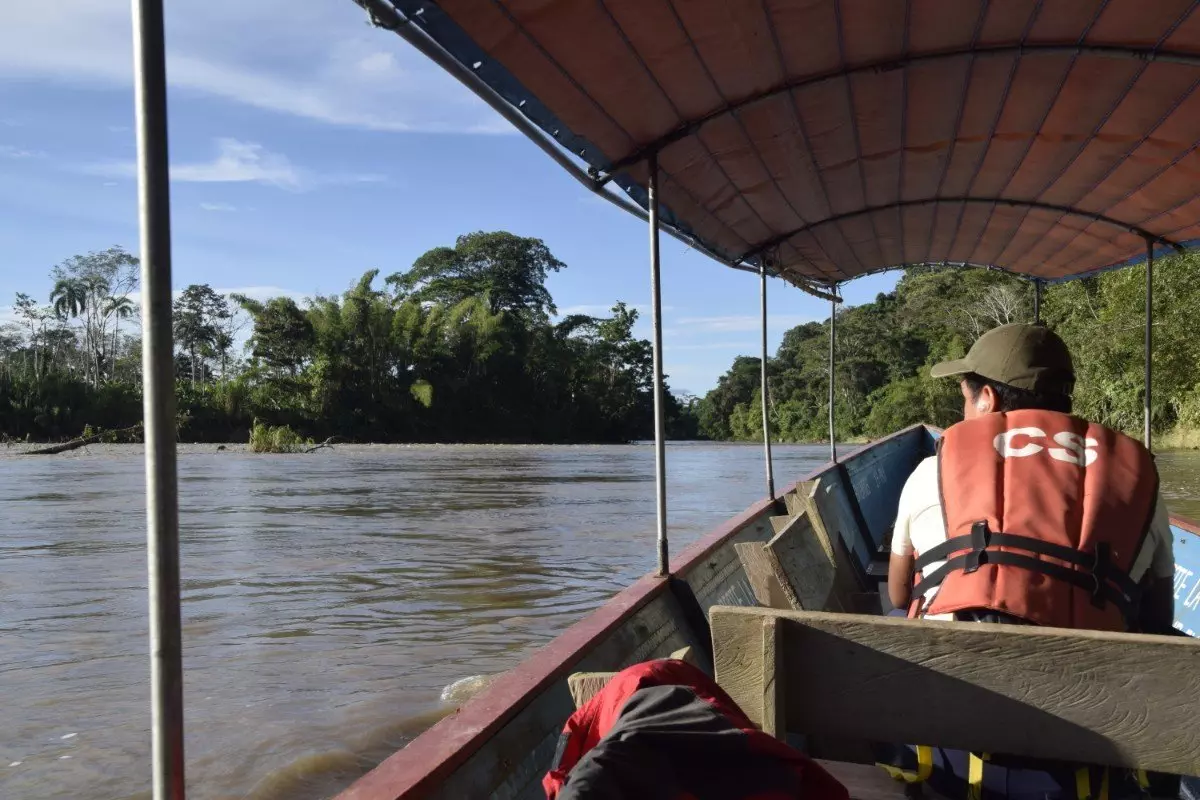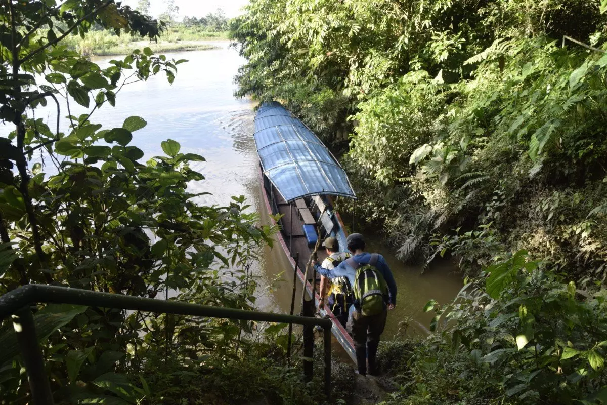 Die Straße endet buchstäblich im Fluss Napo. Dort wartet ein motorisiertes Kanu darauf, Sie das letzte Stück des Weges zur Dschungellodge zu bringen, die rund 40 Kilometer von Tena entfernt und von grünem Regenwald umgeben ist. Die Bootsfahrt dauert ca. 15 Minuten.