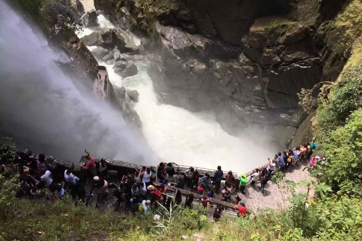 Die Stadt ist von Wasserfällen umgeben. Beliebt ist ein Besuch des Pailón del Diablo, des größten Wasserfalls der Gegend, der mit seiner Kraft und Stärke beeindruckt. Dorthin kommt man mit dem regionalen Chiva-Bus, einem bunten Bus ohne Türen und Fenster, sodass man eine tolle Sicht auf die wunderschöne Natur hat. Dieser Ausflug kann ganz einfach vor Ort organisiert werden. Die Kosten belaufen sich auf rund 15 USD pro Person.