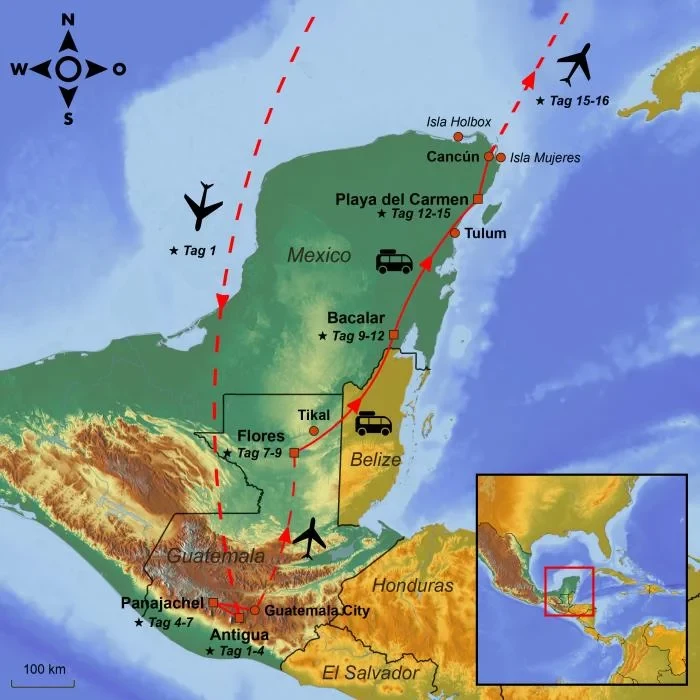 Nach einer interessanten Rundreise durch Guatemala und Mexiko kommen Sie am ausgewählten Flughafen an.