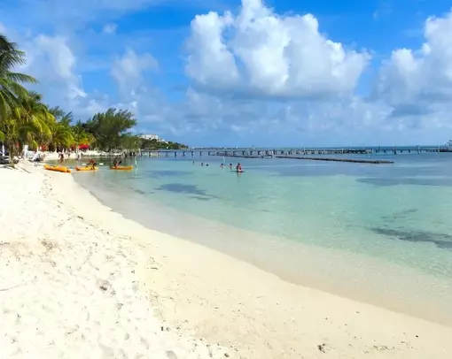 Isla Mujeres ist für charmantes Inselleben, weiße Sandstrände und kristallklares Wasser der Karibik bekannt und mit seichtem Wasser und sanften Wellen ideal für die ganze Familie.