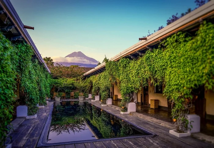 Das Hotel Porta Antigua ist eine wundervolle, stimmungsvolle Oase im Herzen von Antigua, fußläufig in nur fünf Minuten vom zentralen Platz entfernt. Das Hotel liegt inmitten üppiger Gärten mit spektakulärer Aussicht auf die majestätischen Vulkane Agua, Fuego und Acatenango.