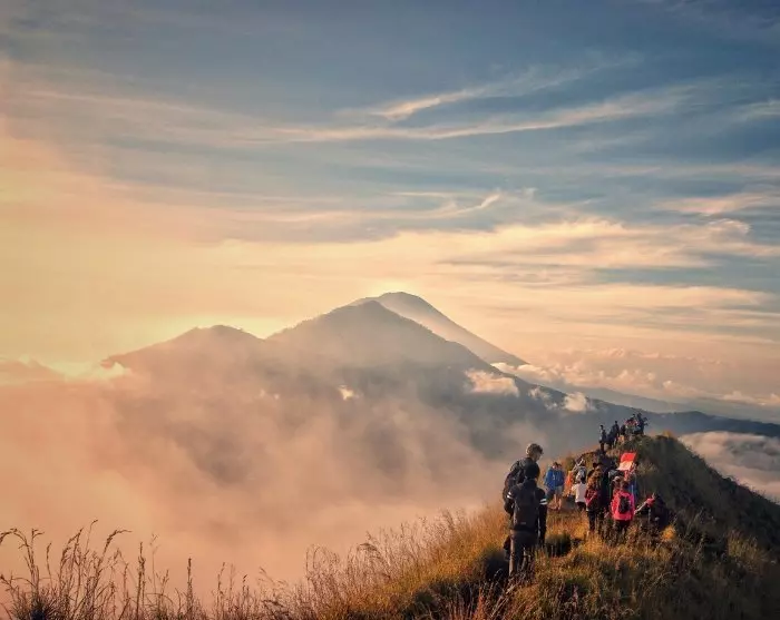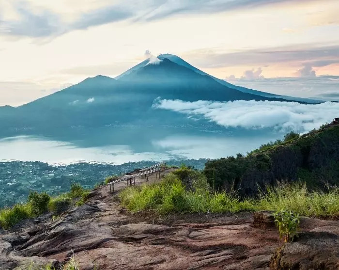 Nehmen Sie an einer unvergesslichen Wanderung zum Gipfel des aktiven Vulkans Mount Batur teil. Von hier aus können Sie einen herrlichen Blick auf Bali und die wunderschöne Natur genießen.