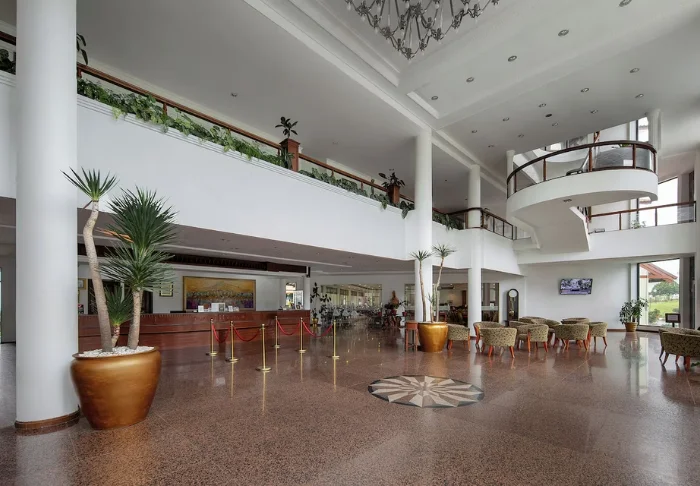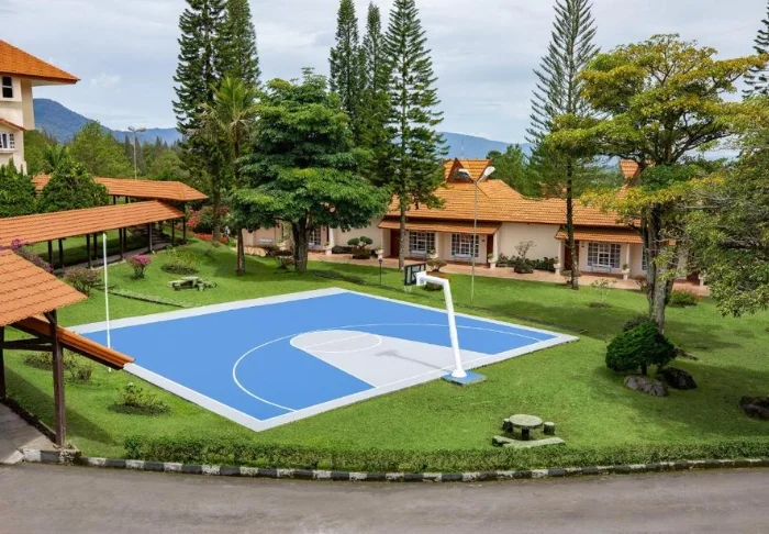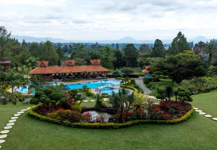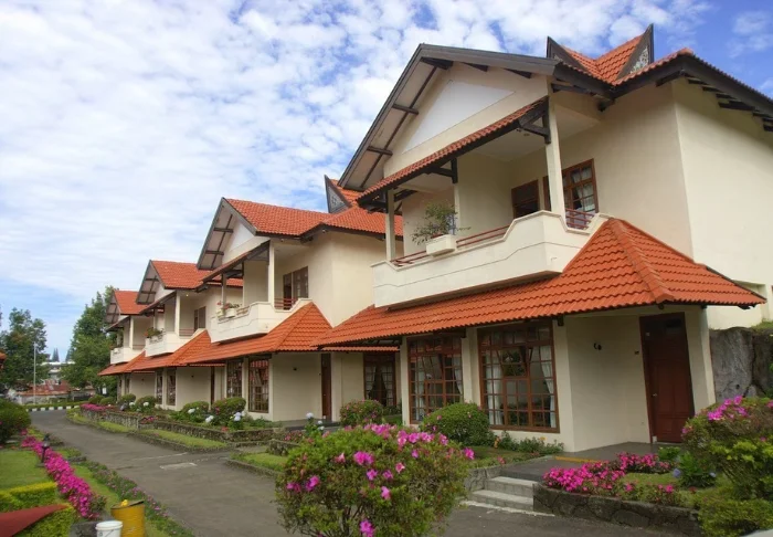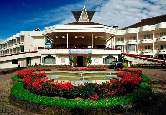 Das Hotel Sinabung Hills Berastagi liegt im üppigen Hochland direkt außerhalb von Berastagi, wo Sie frische Bergluft und Ausblicke auf die Vulkane der Region erwarten. Das Hotel erstreckt sich über weitläufige, offene Rasenflächen, durchsetzt mit hohen Bäumen, blühenden Beeten und kleinen Pfaden – das schafft eine entspannte, einladende Atmosphäre.