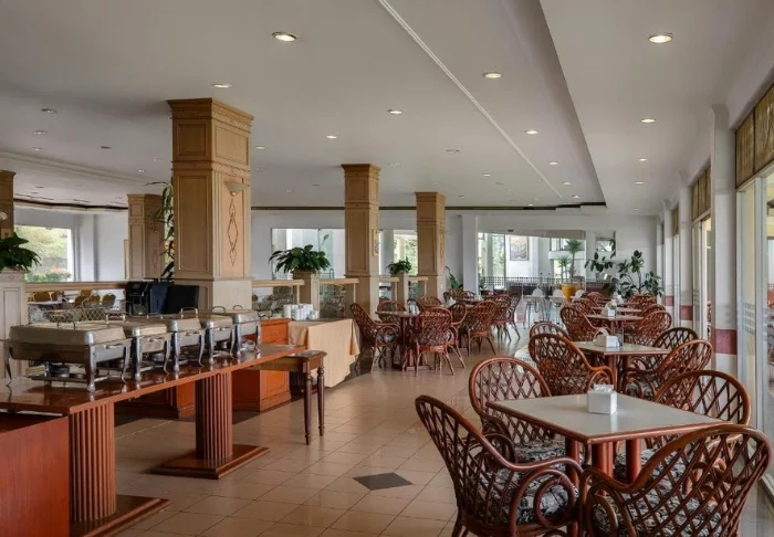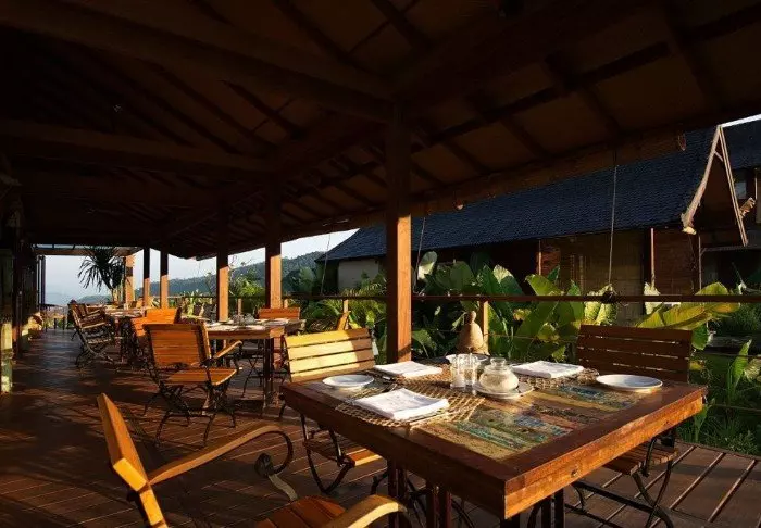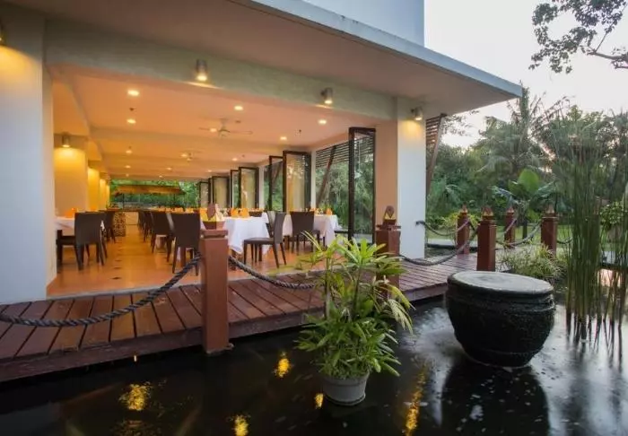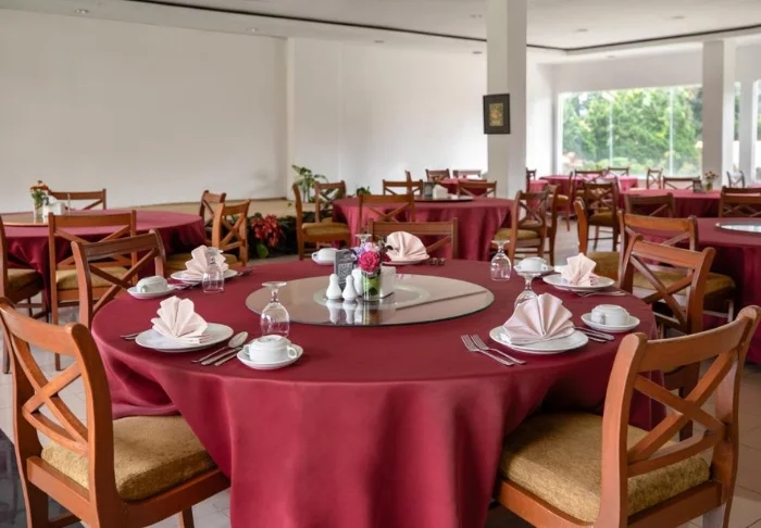 Das hoteleigene Restaurant bietet eine abwechslungsreiche Speisekarte mit lokalen und internationalen Gerichten, die mit frischen Zutaten aus der Region zubereitet werden. Hier können Sie Ihre Mahlzeiten mit Blick auf die üppigen Plantagen der Gegend genießen.