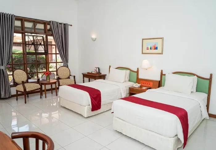Das Bintang Flores verfügt über 101 Zimmer, die alle wunderschön in warmen, hellen Farben eingerichtet sind, die für Ruhe im Raum sorgen. Sämtliche Zimmer sind mit Klimaanlage, WLAN, Minibar und Kühlschrank, Safe, TV-Gerät, Telefon und Wasserkocher ausgestattet, sodass Sie eine Tasse Tee oder Kaffee zubereiten können. Im Badezimmer finden Sie sowohl einen Föhn als auch kostenlose Mineralwasserflaschen und Toilettenartikel. Die Zimmer besitzen zudem einen französischen Balkon, von dem aus Sie die Aussicht auf den Garten und das Meer genießen können, das sich hinter einigen hohen Bäumen versteckt.