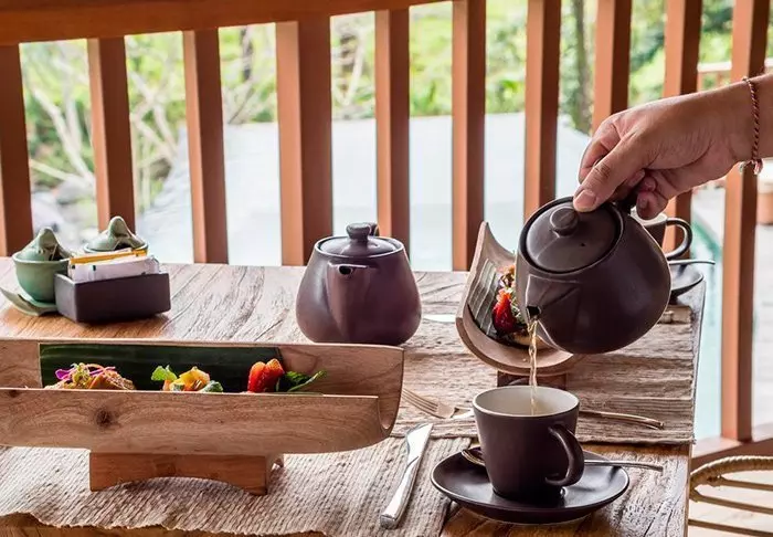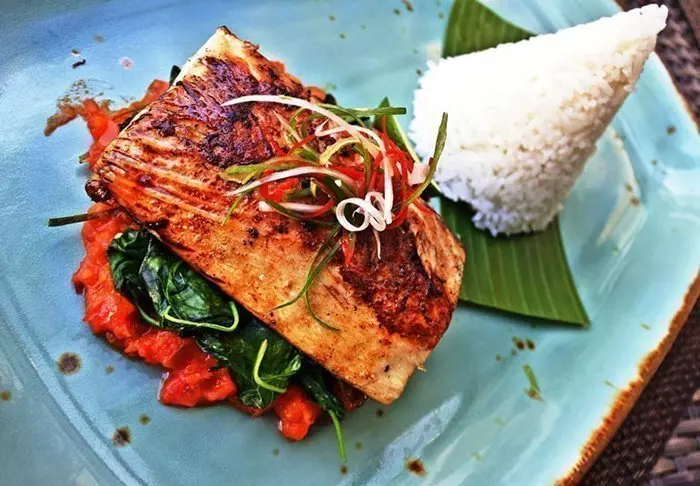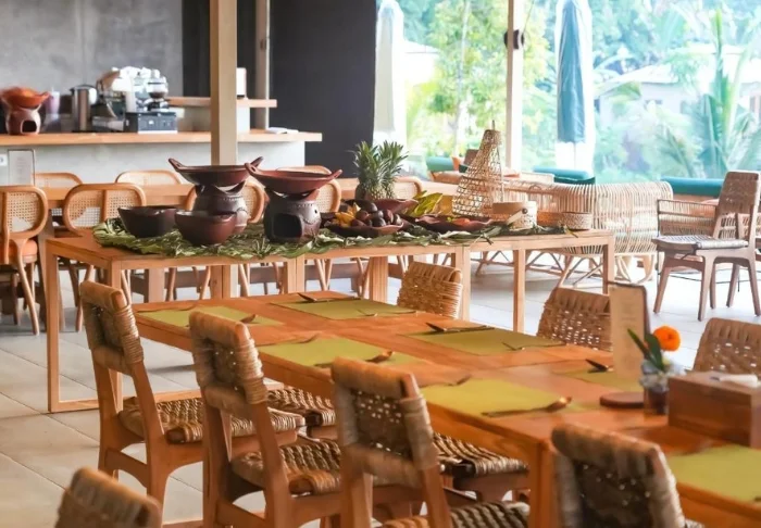 Das Restaurant Pratiwi folgt dem Farm-to-Table-Prinzip und bezieht seine Zutaten direkt von den eigenen Feldern und aus benachbarten Bauernhöfen. Die saisonale Karte setzt balinesische Aromen, hausgemachte Gewürzpasten und frische Kräuter gekonnt in Szene.