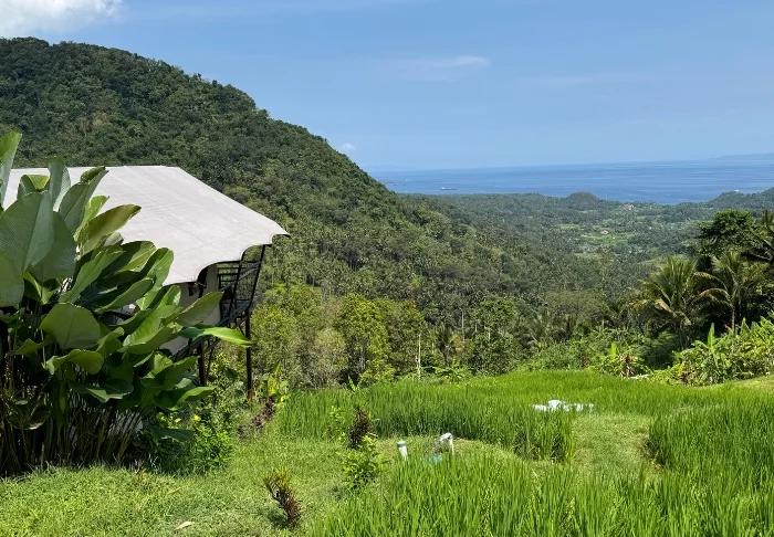 Kaura Bali liegt hoch in den Hügeln oberhalb von Manggis. Es ist ein Ort, an dem Dorfleben, Natur und Ruhe zusammenfinden. Hier wohnen Sie, umgeben von grünen Reisterrassen und Dschungel, mit Blick auf den Indischen Ozean, und die Atmosphäre ist entspannt, aufmerksam und eng mit der lokalen Gemeinschaft verbunden. Kaura wurde von unserem lokalen Partner in enger Zusammenarbeit mit dem Dorf geschaffen, und vieles an diesem Erlebnis entspringt den Begegnungen mit den Menschen, die hier leben. Alles wirkt warmherzig, bodenständig und respektvoll gegenüber der Natur und den örtlichen Traditionen.