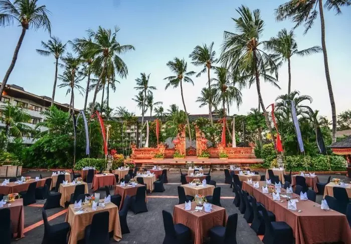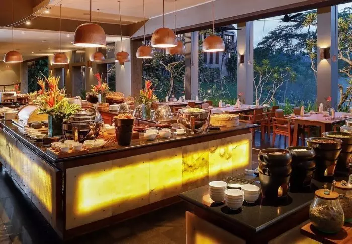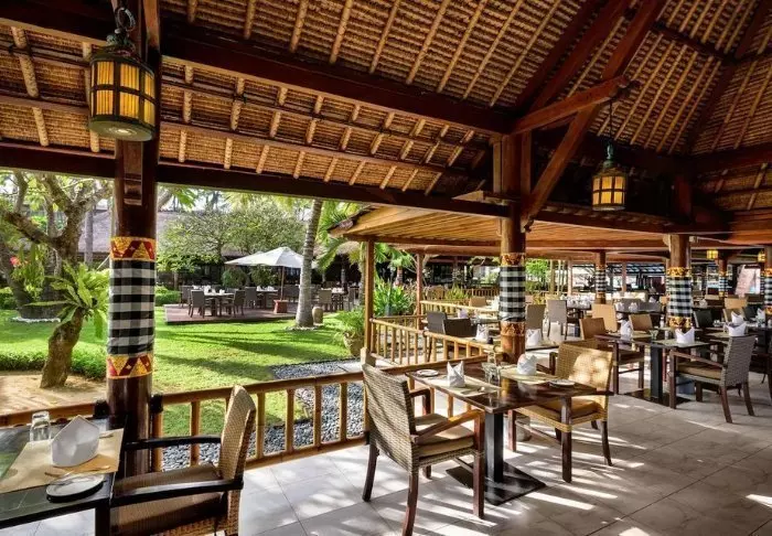 Freuen Sie sich auf Gourmeterlebnisse in den verschiedenen Restaurants des Hotels. Beginnen Sie den Morgen im Tirta Restaurant mit einem reichhaltigen Frühstücksbuffet, genießen Sie authentische indonesische Gerichte im Lada Restaurant, oder probieren Sie italienische Spezialitäten im Basilico Italian Pavilion. Die Bamboo Bar & Lounge bietet eine entspannte Atmosphäre und ein auffälliges Dekor. Es ist der ideale Ort, um sich bei einem Cocktail am Nachmittag zu entspannen, während das Meer rauscht, und bei Sonnenuntergang können Sie bei Live-Musik Snacks und köstliche Pizzas genießen.