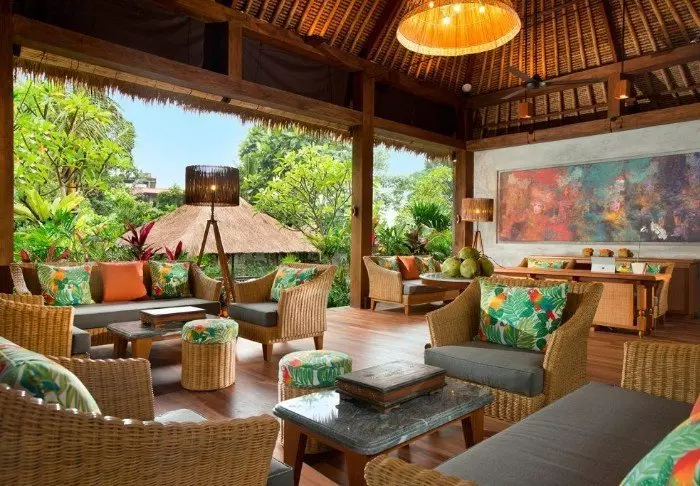 Die Zimmer sind 50 m² groß und herrlich in modernem balinesischem Stil eingerichtet, welcher perfekt in diese Umgebung mit wunderschöner Natur passt. Alle Zimmer sind mit WLAN, Klimaanlage, Deckenventilator, Tee- und Kaffee-Ecke, Minibar, gratis Wasserflaschen, Safe, TV-Gerät und Telefon ausgestattet. Im Badezimmer befinden sich Bademäntel und Hausschuhe, ein Föhn und Toilettenartikel. Nachdem Sie hoffentlich richtig gut geschlafen haben, können Sie sich auf die eigene Terrasse setzen und mit einer dampfenden Tasse Tee oder Kaffee die Aussicht auf die grüne Umgebung und die vielen Laute des Dschungels genießen.