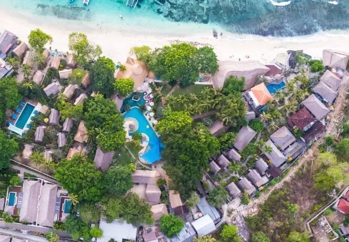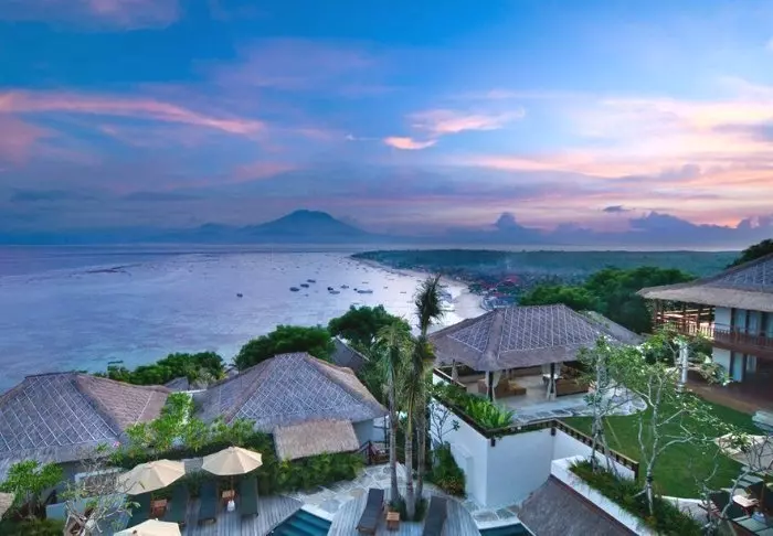 Das Resort Batu Karang Lembongan befindet sich an einem Riffabhang über dem Strand Jungut Batu und bietet einen herrlichen Blick auf die Straße Badung und den beeindruckenden Vulkan Agung auf Bali.