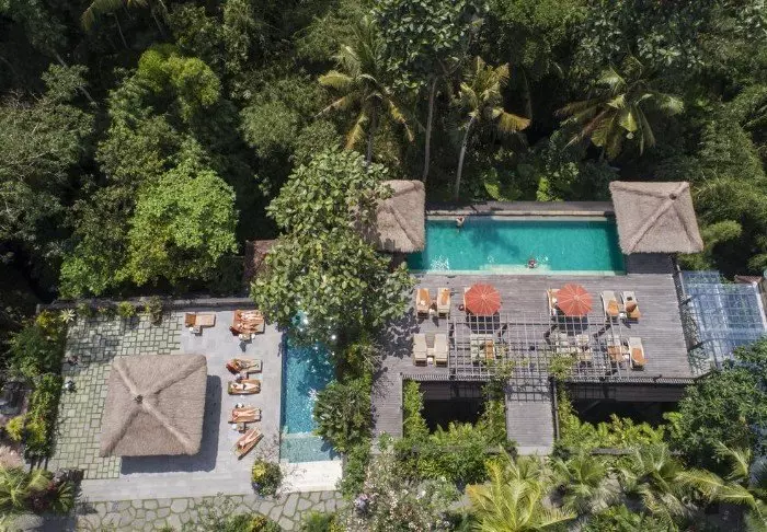 Das Adiwana Resort Jembawan liegt versteckt im dichten Dschungel von Ubud, umgeben von Flüssen, hohen Tropenbäumen und Palmen. Obwohl es Ihnen so vorkommt, als wären Sie weit weg von der Zivilisation, sind die Hauptstraße, der Markt von Ubud und Ubud Palace ganz leicht zu Fuß zu erreichen.