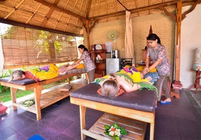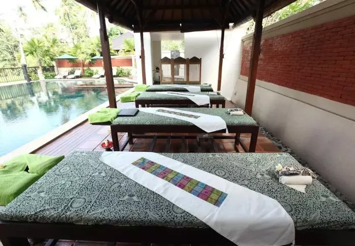 Wenn Sie sich selbst verwöhnen möchten, können Sie gegen Aufpreis traditionell balinesische Massageanwendungen in der Wellnessabteilung des Resorts buchen.