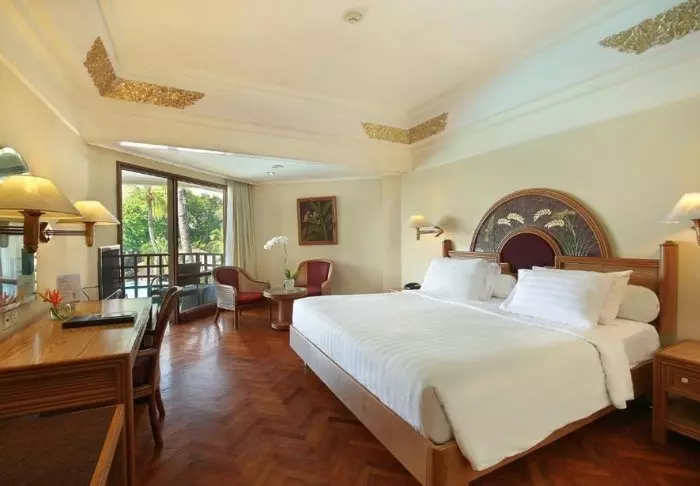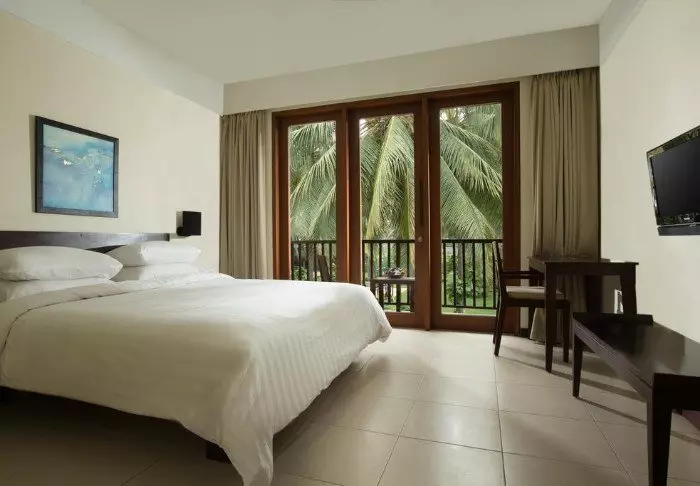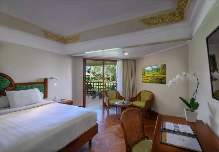 Das Maya Sanur verfügt über 103 helle, perfekt eingerichtete und mind. 57 m2 geräumige Zimmer. Sämtliche Zimmer sind mit WLAN, Klimaanlage, Minibar, Tee-/Kaffee-Ecke, Safe, TV-Gerät und Telefon ausgestattet. Darüber hinaus gibt es einen Schreibtisch und eine Sitzecke. Das Badezimmer bietet sowohl eine Dusche als auch eine Badewanne sowie Toilettenartikel, Bademäntel und Hausschuhe. Von Ihrem eigenen Balkon aus sehen Sie auf den grünen Garten. Hier können Sie sitzen und ein Buch lesen oder eine Tasse balinesischen Kaffee genießen.