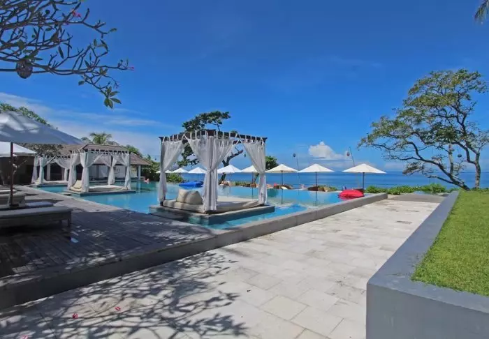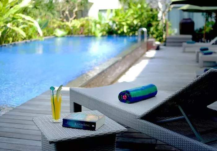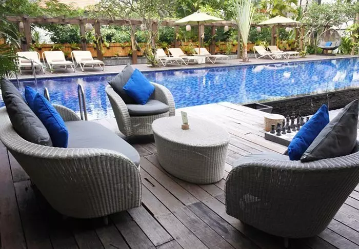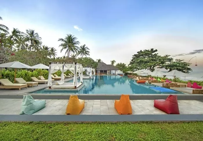 Das Resort verfügt über zwei große Poolbereiche: Den Sahadewa Pool im Garten mit getrenntem Kinderpool, der sich für Familien anbietet und den Nakula Pool direkt am Strand mit freiem Blick auf das Meer. Am Nakula Pool befindet sich auch die entspannte The Breeze Bar mit tropischen Cocktails, frischen Kokosnüssen, kaltem Bier und leichten Snacks im Schatten hoher Bäume. Am Sahadewa Pool befindet sich die Sahadewa Bar, die tagsüber Snacks, Erfrischungen und Cocktails serviert.