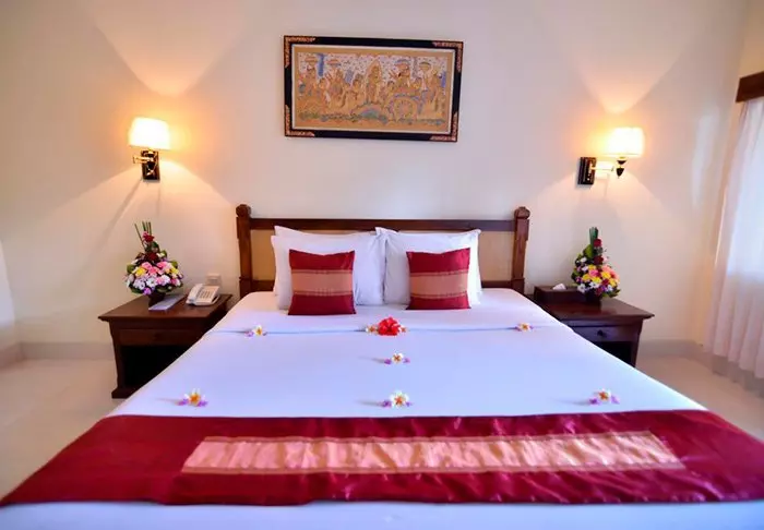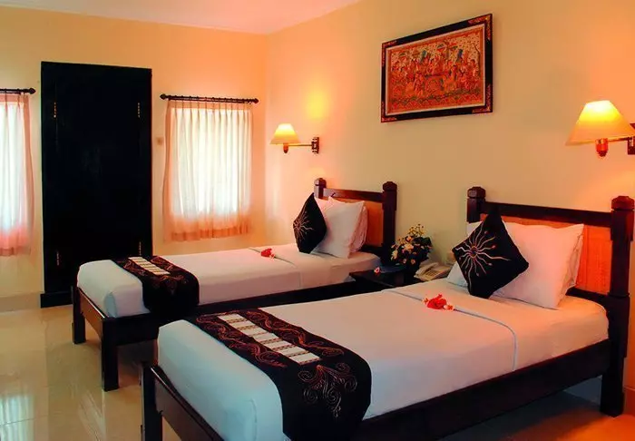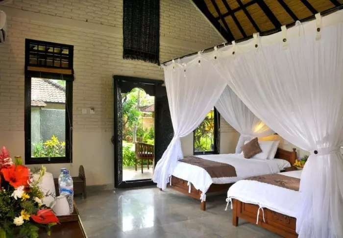 Die Hotelzimmer sind schlicht im balinesischen Stil eingerichtet und mit kostenlosem WLAN, Klimaanlage, Minibar, TV-Gerät, Telefon, Kaffee- und Tee-Ecke sowie mit einem Badezimmer mit gratis Toilettenartikeln ausgestattet. Auf Ihrem eigenen Balkon oder Ihrer eigenen Terrasse können Sie sich entspannen und die Ruhe des Gartens genießen.