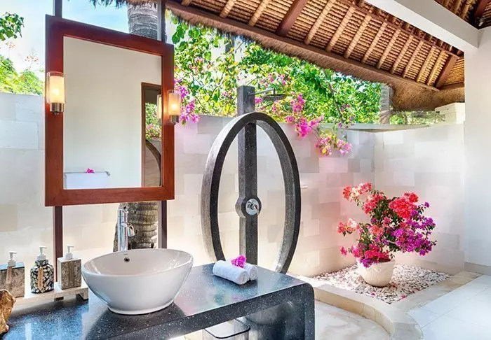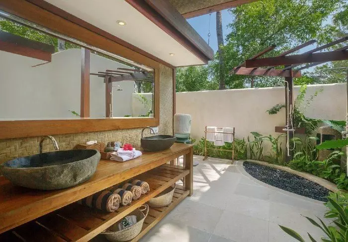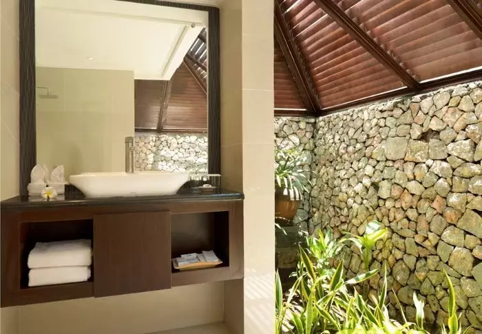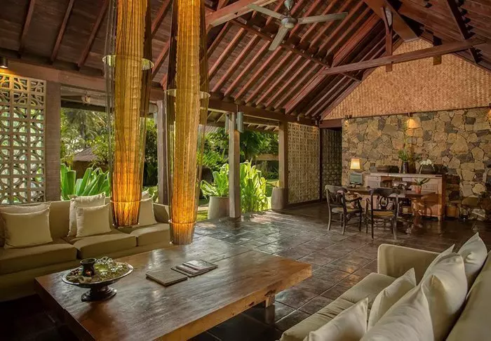Batu Karang wurde aus rustikalen Materialien errichtet, die sich harmonisch in die tropische Umgebung fügen. Der Stil ist modern und traditionell gleichzeitig und wurde für alle 37 einladenden Villen und Suiten des Resorts genutzt. Sie alle sind mit hellen Wänden, wunderschönen Steinböden und eleganten dunklen Holzmöbeln ausgestattet, die zu einer warmen und gemütlichen Atmosphäre beitragen.