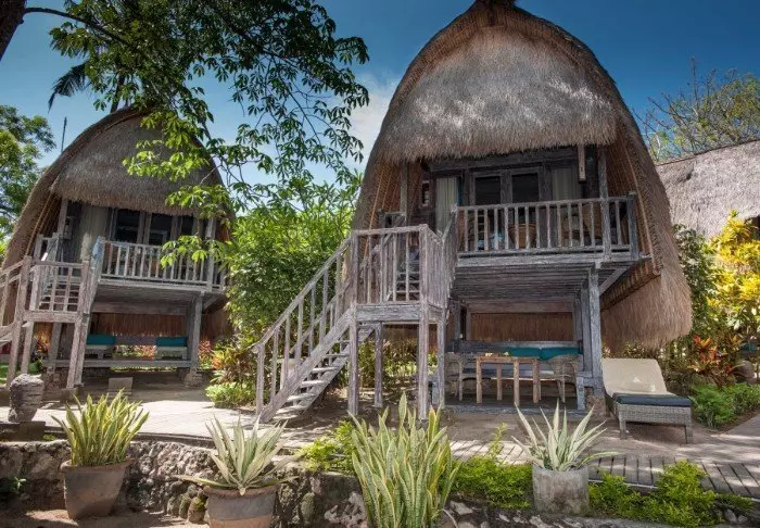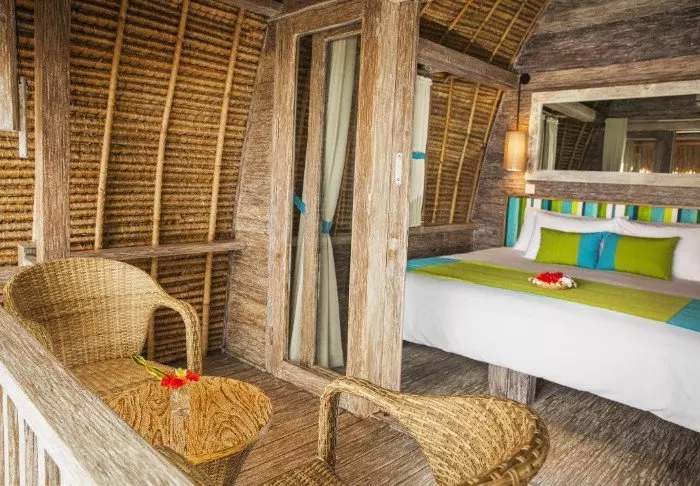 Das Resort ist von einem tropischen Garten umgeben und in traditionellem Sasak-Stil errichtet. Alle 35 Zimmer sind mit vom Boden bis zur Decke mit schönen Naturmaterialien eingerichtet und herrlichen gewebten Textilien geschmückt. Es gibt sowohl Klimaanlage als auch WLAN, Minibar, gratis Wasserflaschen, einen Safe, ein TV-Gerät und einen DVD-Player. Das Badezimmer ist mit einer Regendusche, Föhn und kostenlosen Toilettenartikeln ausgestattet. Von Ihrem Balkon aus können Sie die sanfte Brise und die Aussicht auf den Garten mit Mangobäumen und Palmen oder auf das stille Wasser der Bucht genießen.