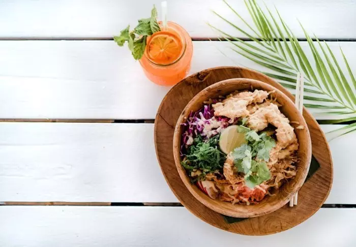 Mittags können Sie The Blue Beach am Strand besuchen. Dort können Sie leichte Gerichte und Snacks unter freiem Himmel, mit den Zehen im Sand, genießen.