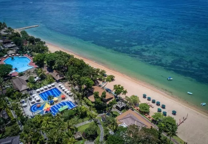 Die Lage des Resorts ist einzigartig. Es befindet sich direkt am herrlichen Sandstrand von Sanur, welcher zum Sonnenbaden und zum Schwimmen einlädt. Wenn Sie früh aufstehen, können Sie beobachten, wie die Sonne über den traditionellen Fischerbooten am Horizont aufgeht.