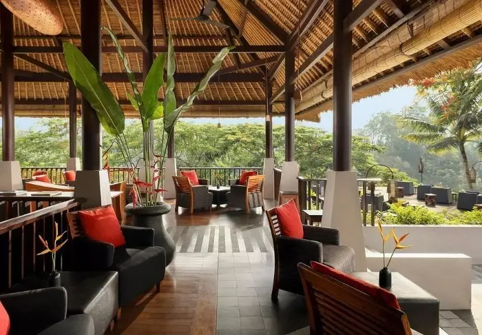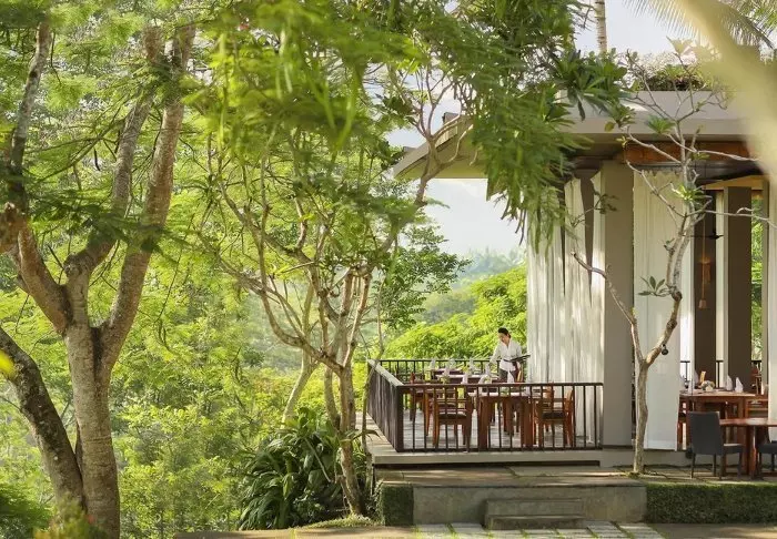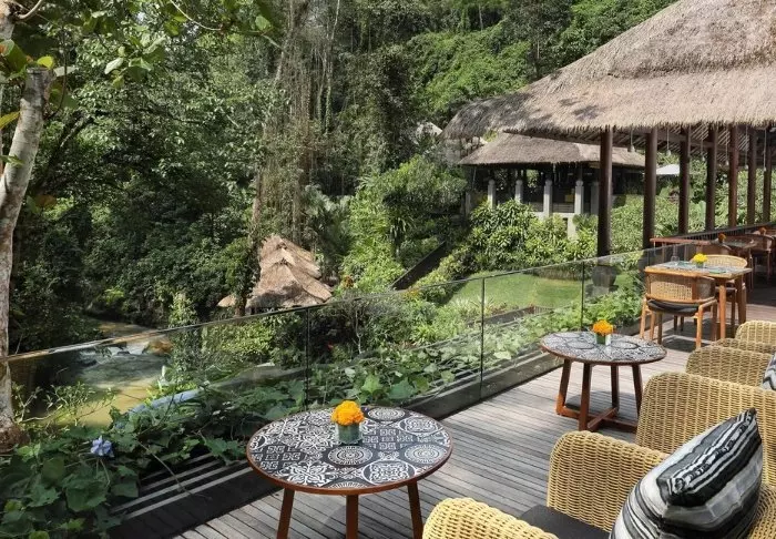 Wenn sich nach einem erlebnisreichen Tag der Hunger meldet, können Sie sich in einem der drei Restaurants im Hotel mit einem kulinarischen Erlebnis aus der regionalen oder internationalen Küche verwöhnen lassen. Und an der Hotelbar, der Tree Bar, können Sie zur Aussicht auf die grüne Natur von Ubud ein eiskaltes Getränk genießen.