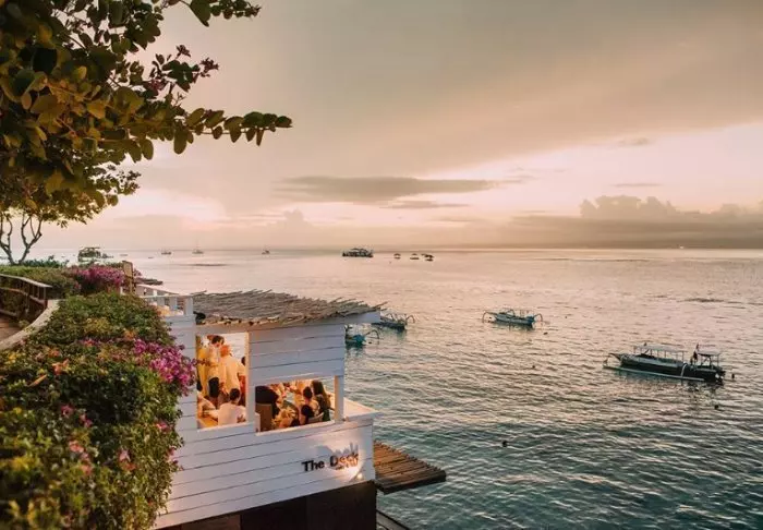 Die Tree Bar wurde auf drei Ebenen errichtet. Sie befindet sich direkt neben dem Infinity-Pool und bietet eine herrliche Aussicht auf den Strand von Sanur. Dort können Sie leichte Speisen sowie Bier, Wein und Cocktails in der erfrischenden Meeresbrise genießen.