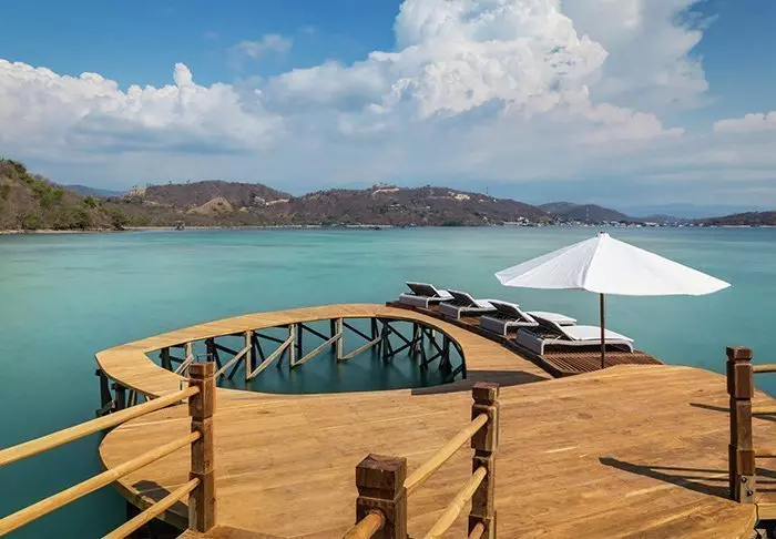 Im Norden von Labuan Bajo befindet sich das luxuriöse 5-Sterne-Resort Ayana Komodo Resort. Inspiration für die Einrichtung holte man sich vom vielfältigen Kulturerbe und der rustikalen Schönheit der Insel. Von allen Gemeinschaftsbereichen des Resorts aus hat man eine atemberaubende Aussicht auf die Bucht und die hügelige Insel Kukusan Island.