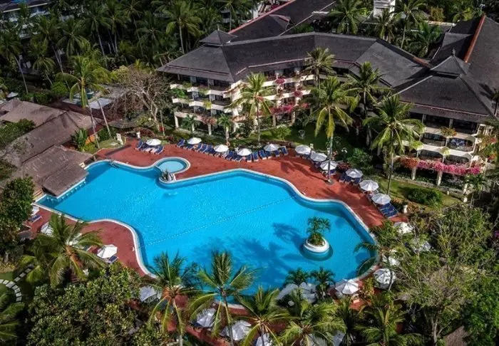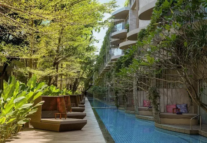 Das Hotel bietet ein separates Kinderbecken und zwei Swimmingpools. Einer der Pools ist von hoch aufragenden Palmen und blühenden Sträuchern umgeben, während der andere ruhig am Flussufer gelegen ist.