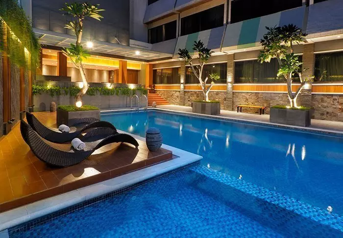 Das Mercure Bali Sanur Resort liegt direkt an einem der allerbesten Strände von Sanur, einem ruhigen, breiten Sandstrand mit seichtem Wasser und im Schatten der Palmen. Das Resort erstreckt sich über fünf Hektar tropische Gärten mit wogenden Palmen und kleinen Pfaden, die sich zwischen balinesischen Gebäuden mit traditionellen Alang Alang-Dächern winden. Hier wohnen Sie in einer friedlichen Umgebung aber immer noch in unmittelbarer Nähe der netten Fußgängerzone von Sanur mit Cafés, Geschäften und Restaurants.