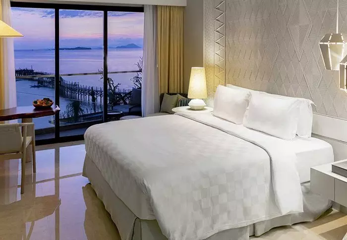 Die 205 Zimmer des Resorts sind stilvoll mit Möbeln und modernem Dekor in hellen Farben eingerichtet, was perfekt zum Tageslichteinfall von den großen Fenstern passt. Jedes Zimmer ist mind. 43 m2 groß und hat einen eigenen Balkon, von wo aus Sie die fantastische Aussicht aufs Meer und die goldenen Farben des Sonnenuntergangs bestaunen können. Alle Zimmer sind außerdem mit Klimaanlage, gratis WLAN, LED-TV-Gerät, begehbarem Schrank, Minibar und einer Tee- /Kaffee- Ecke ausgestattet. Im Badezimmer finden Sie einen Föhn, eine separate Regendusche und eine Badewanne.