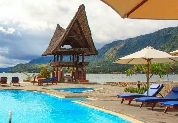Im Regierungsbezirk Karo in der Nähe der heißen Quellen von Lau Siedebuk Debuk liegt das von üppiger Flora umgebene Hotel. Das Ambiente ist fernöstlich, die Einrichtung modern.
