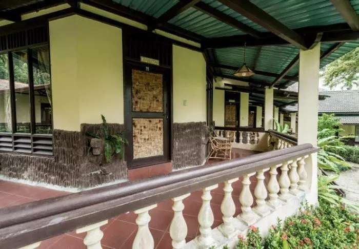 Die Zimmer sind auf 12 Bungalows verteilt, die ebenfalls wie Terrassen auf den grünen Hängen liegen. Alle sind schlicht, aber schön mit Tee-/Kaffee-Ecke, Ventilator, Minibar, Safe, Moskitonetz und gratis WLAN eingerichtet. Auf Ihrer eigenen Terrasse können Sie sich in ein gutes Buch vertiefen oder einfach nur die Stille genießen.