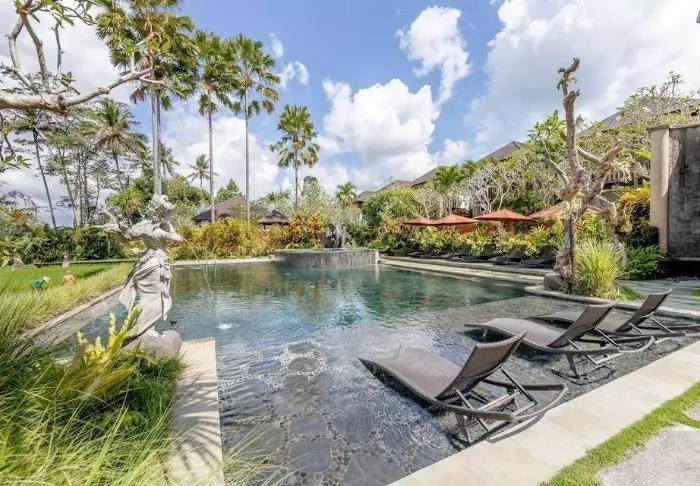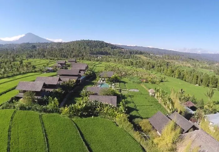 Das Anumana Village Ubud liegt wie eine friedliche Oase mitten in den grünen Reisfeldern rund um Ubud.