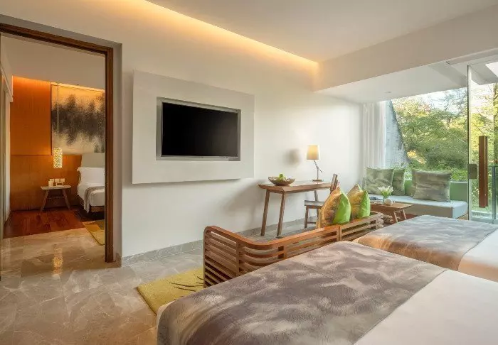 Die Zimmer und Villen sind elegant, mit einer Mischung aus balinesischen Elementen und modernen Annehmlichkeiten – eingerichtet. Sie sind recht geräumig, hell und einladend. Zu allen Zimmer- und Villentypen gehört ein eigener Balkon oder eine eigene Terrasse. Dort können Sie sich jederzeit entspannen und die atemberaubend schöne Aussicht bewundern. Außerdem ist für jeden erdenklichen Komfort gesorgt, sodass Sie Ihren Aufenthalt im Maya Ubud Resort garantiert genießen können. Die Ausstattung umfasst Klimaanlage, Minibar, Kaffeemaschine, Tee-Ecke, Safe, Bügeleisen und Bügelbrett, ein großes Flachbildschirm-TV-Gerät sowie gratis WLAN und einen Bluetooth-Lautsprecher. Im Badezimmer stehen eine große Auswahl an kostenlosen Toilettartikeln sowie ein Föhn, Bademäntel und Hausschuhe bereit.