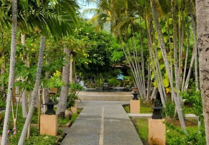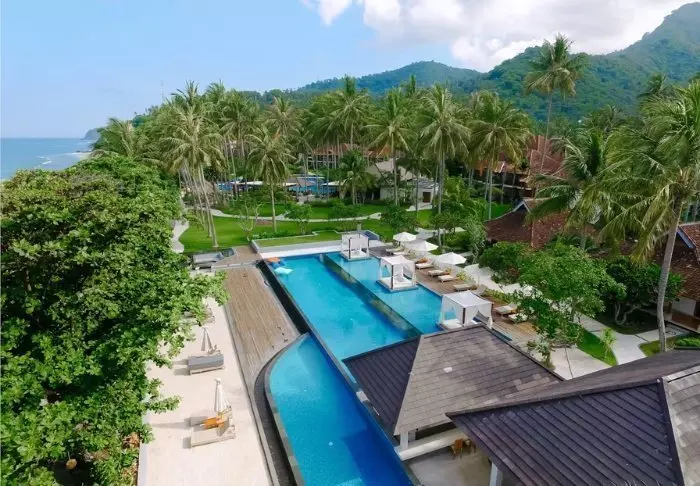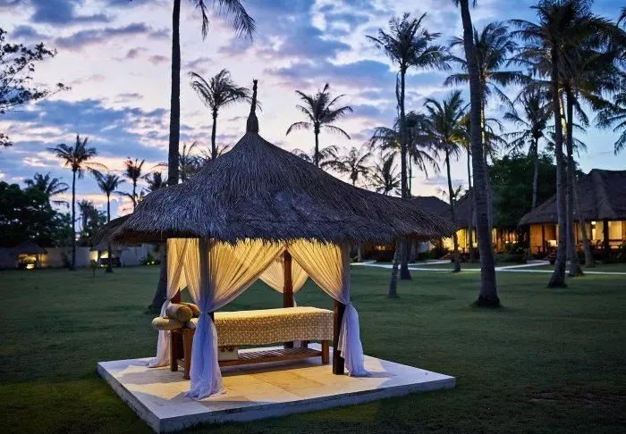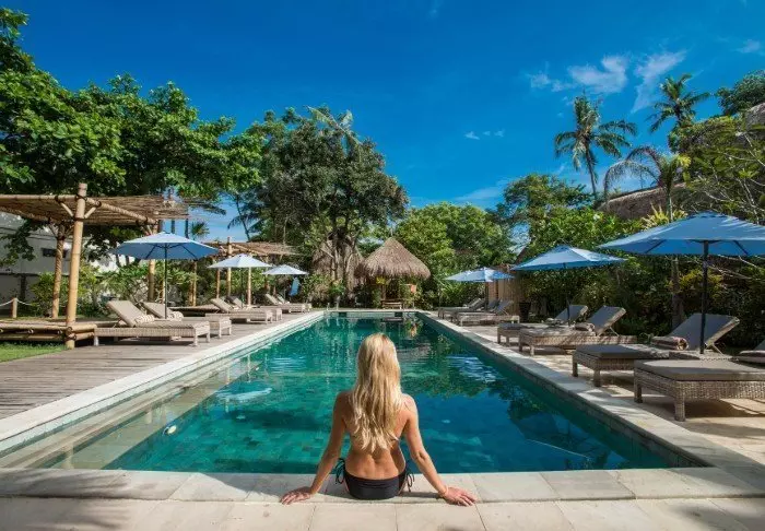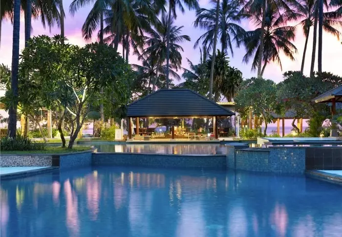 An der südlichen Spitze von Gili Trawangan befindet sich das luxuriöse Hotel Pondok Santi Estate. Das Hotel wurde 2005 auf einer ehemaligen Kokosplantage errichtet, die in einen tropischen Garten verwandelt wurde.