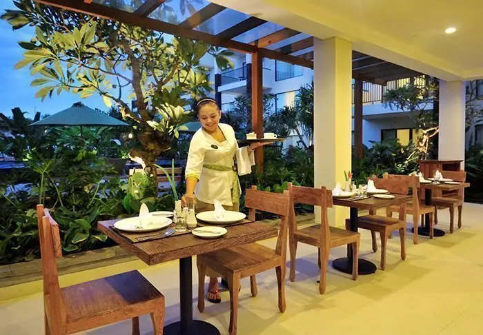 Das Hotel verfügt auch über ein hübsches kleines Restaurant, in dem Sie balinesische Küche und internationale Favoriten serviert bekommen – entweder im Innenbereich oder unter freiem Himmel.