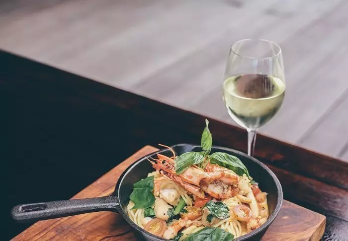 Das Restaurant serviert Gerichte aus dem lokalen Karo-Hochland sowie internationale Klassiker.