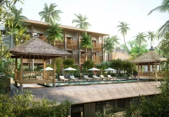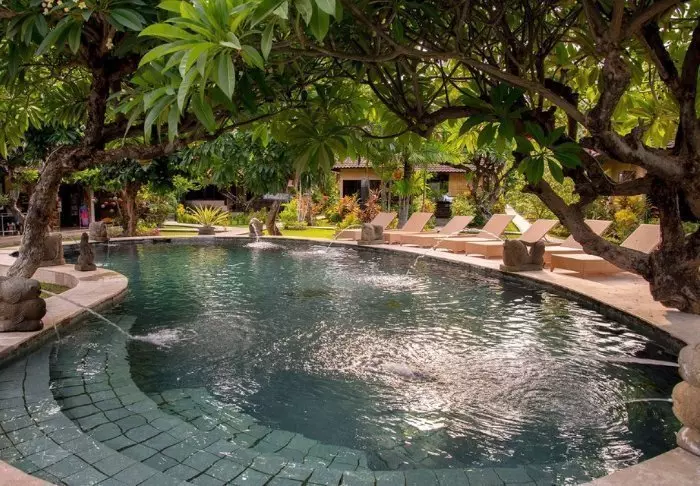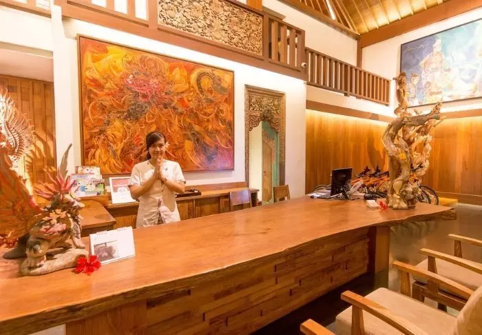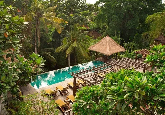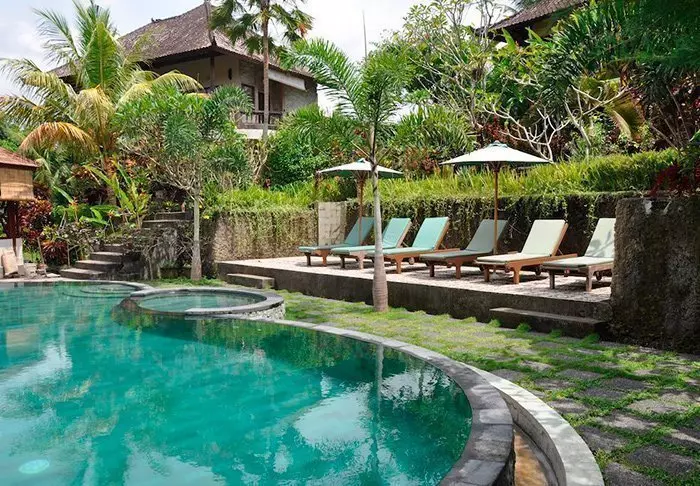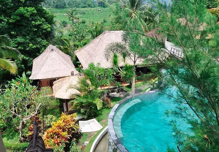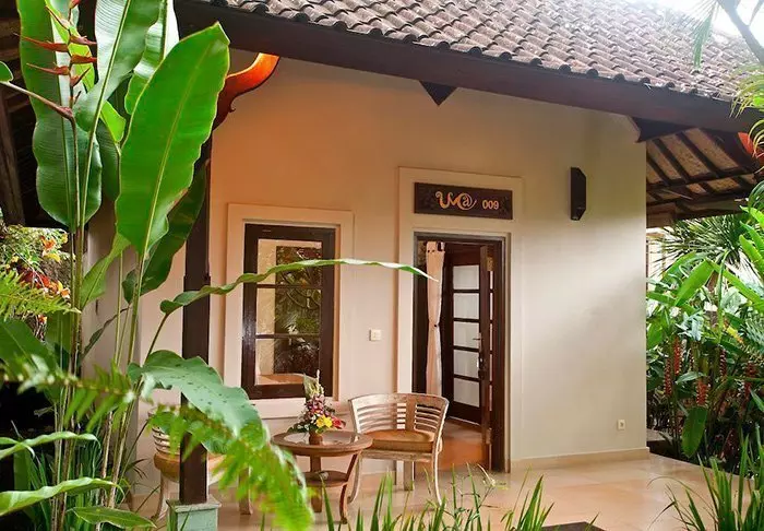 Das kleine Hotel wurde im traditionellen balinesischen Stil aus natürlichen Materialien gebaut, die die grüne Umgebung wunderbar ergänzen.