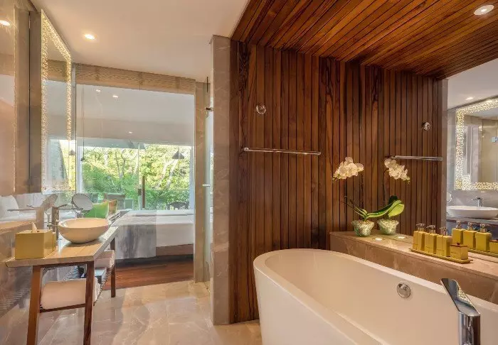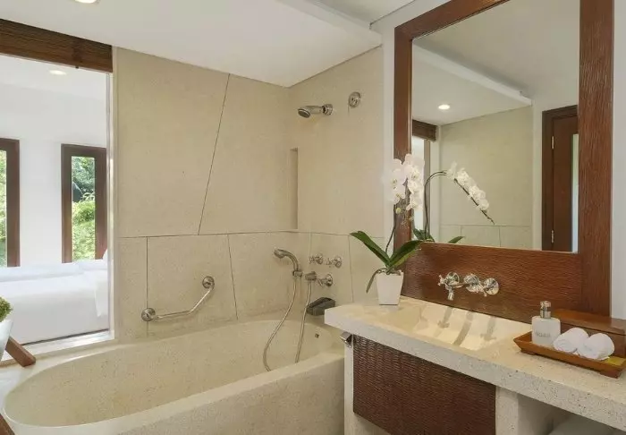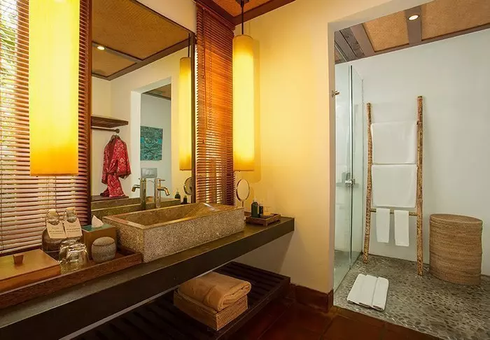Die Zimmerkategorien sind unterschiedlich: von den 45 m2 großen Doppelzimmern, von denen mehrere ein privates Tauchbecken haben, bis zur 300 m2 großen 3-Zimmer-Villa. Sämtliche Zimmerkategorien sind mit Klimaanlage und Deckenventilator, Moskitonetz über dem Bett, TV-Gerät, Telefon, Internet sowie Minibar, Kaffee- und Tee-Ecke, Bügeleisen und Bügelbrett, Morgenmänteln und Föhn ausgestattet. Zudem steht ein Outdoor-Bad mit Dusche zur Verfügung.