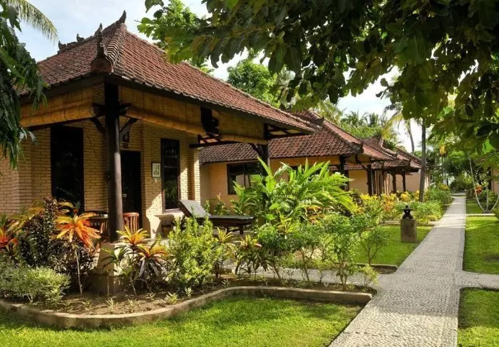Das Hotel ist gemütlich und bietet eine herrlich entspannte Atmosphäre. Es wurde in authentisch-indonesischem Stil, mit traditionellen Lumbung-Hütten und Bungalows, errichtet.
