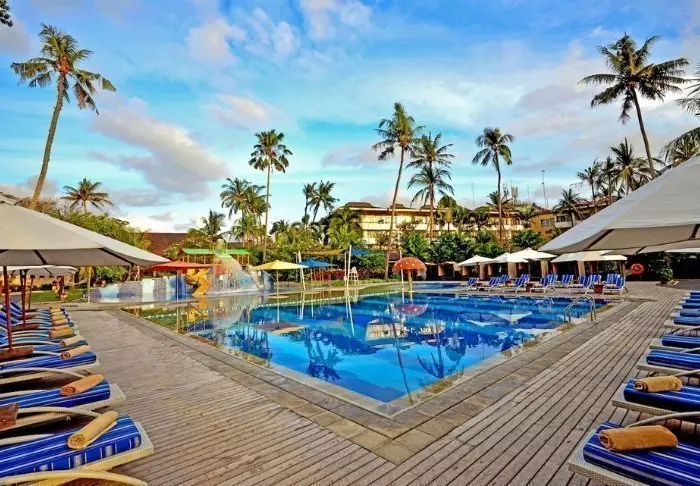 Es gibt einen herrlichen Poolbereich mit Kinderbecken, dazugehörigen Liegestühlen und Sonnenschirmen sowie einen kleinen Spielplatz für Kinder. Wenn sich der Hunger meldet, können Sie zwischen zwei hoteleigenen Restaurants wählen: dem Balimoon und dem Sea Food Grill. Im Hotel gibt es außerdem zwei Bars, in denen Sie sich ein kühles Getränk genehmigen können. Falls Sie eine Massage oder andere Wellnessanwendungen buchen möchten, ist dies gegen Aufpreis in der Wellnessabteilung des Hotels möglich.