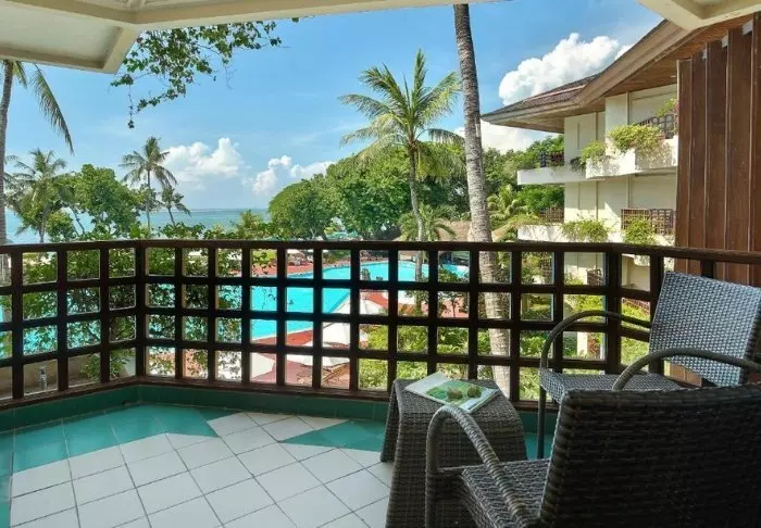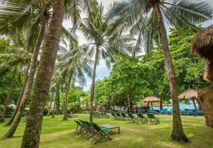 Standardmäßig wohnen Sie in einem der Deluxe-Zimmer des Hotels in niedrigen, über das Gelände verteilten Bauten. Die 40 m² großen Zimmer sind entweder mit einem Kingsize- oder zwei Einzelbetten ausgestattet. Die Einrichtung ist einfach, mit dunklen Holzmöbeln, Fliesenboden und gedämpften Farben, die für ein ruhiges Ambiente sorgen. Alle Zimmer sind mit Klimaanlage, TV, WLAN, Safe, Minibar, Kaffee-/Tee-Ecke ausgestattet. Im Badezimmer gibt es eine Dusche und einen Föhn. Von dem großen, privaten Balkon oder der Terrasse haben Sie Aussicht auf den tropischen Garten des Hotels mit Palmen und blühenden Büschen. Einige Zimmer haben eine Verbindungstür zum Nachbarzimmer und eignen sich daher gut für gemeinsam reisende Familien.