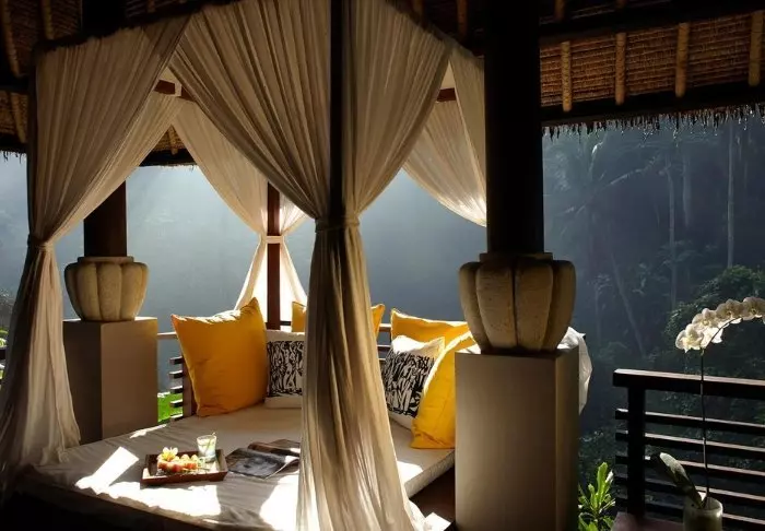 Kaura verfügt zudem über einen traumhaften Infinity-Pool mit Blick über das Tal, wo sich das Licht den ganzen Tag über auf wunderbare Weise verändert. Auf der Hügelkuppe findet Yoga in der kleinen Shala statt, dazu gibt es einen Spa-Bereich mit balinesischen Behandlungen sowie gemütliche Nischen mit Hängematten und Feuerstellen.