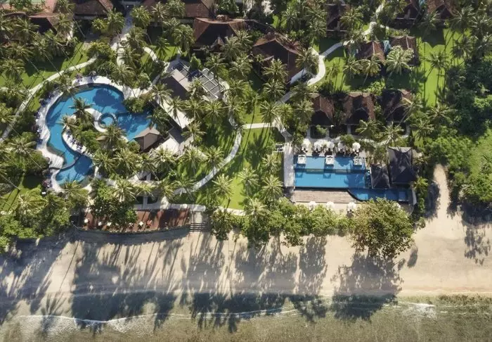 Das Resort zeichnet sich durch seinen eleganten und harmonischen Stil aus, der die malerische Umgebung wunderbar ergänzt. Umgeben von üppigen, tropischen Gärten bietet der Ort eine beruhigende Atmosphäre mit rauschenden Wellen und Vogelgezwitscher, die zu einer charmanten und entspannenden Atmosphäre beitragen.