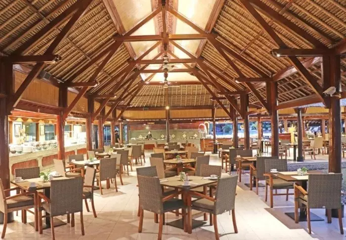 Das Hauptrestaurant des Hotels, das Seahorse Restaurant, ist von 8:00 bis 23:00 Uhr geöffnet. Morgens werden u. a. frisches Obst, selbst gemachtes Joghurt, frisch gebackenes Brot, Eier und Pfannkuchen serviert, während mittags und abends indonesische und südeuropäische Spezialitäten, Fisch und Meeresfrüchte sowie verschiedene Grillgerichte geboten werden.